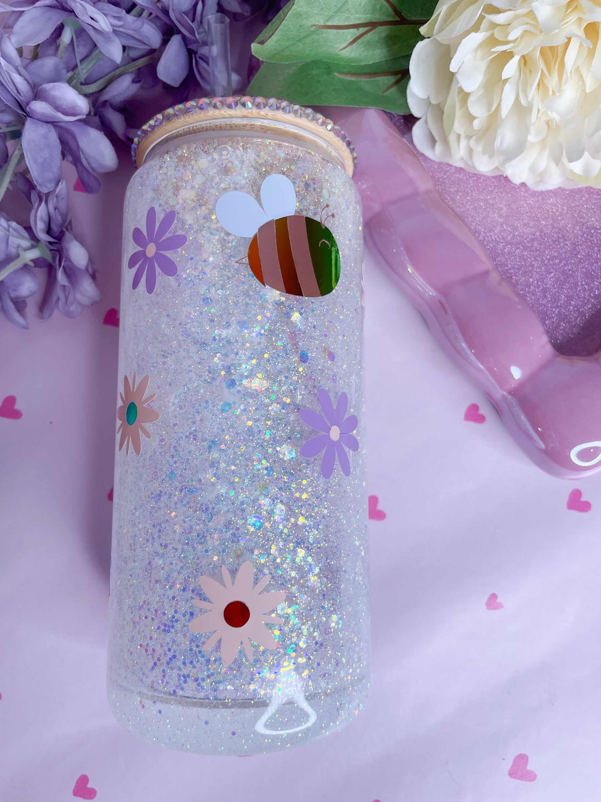 Bumble Bee 15oz Glass Snowglobe Tumbler